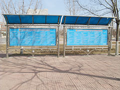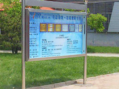 宣传栏是一种VI应用,是组织或企业单位等进行自我宣传的有效手段,常被应用于街道,工厂,酒店等公共场所;一般采用不锈钢为框架,钢化玻璃或者耐力板为面板,铝合金为顶棚,面板可以打开更换宣传画面。